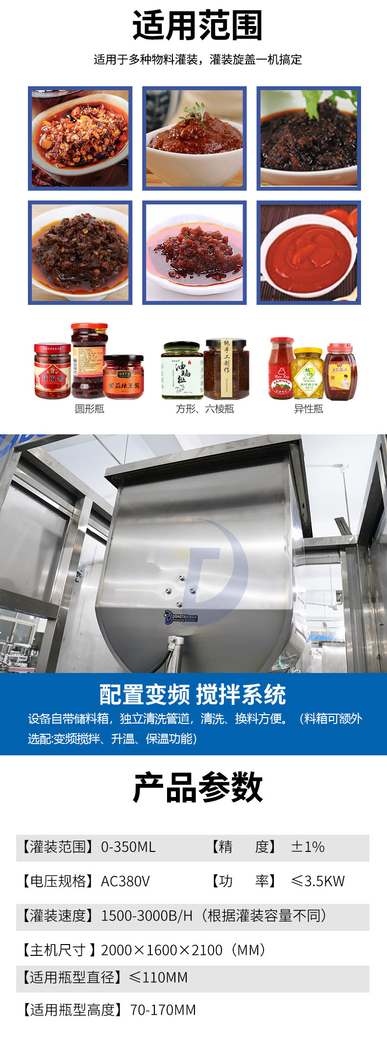 東泰機(jī)械專業(yè)灌裝機(jī)生產(chǎn)加工企業(yè)為您提供最優(yōu)質(zhì)的食用油灌裝機(jī)、全自動(dòng)灌裝機(jī)、(液體、膏體、辣椒醬、顆粒)灌裝機(jī)等,承接各種生產(chǎn)線非標(biāo)定做。東泰機(jī)械,品質(zhì)卓越!